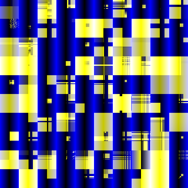 ![]() | float a_0 = log( atan(degrees( degrees( radians( asin( abs( asin( sin( tan( exp2( degrees( floor( abs( log2( uv ) ) ) ) ) ) + time) ) ) ) ) ) ).y , degrees( degrees( radians( asin( abs( asin( sin( tan( exp2( degrees( floor( abs( log2( uv ) ) ) ) ) ) + time) ) ) ) ) ) ).x) );